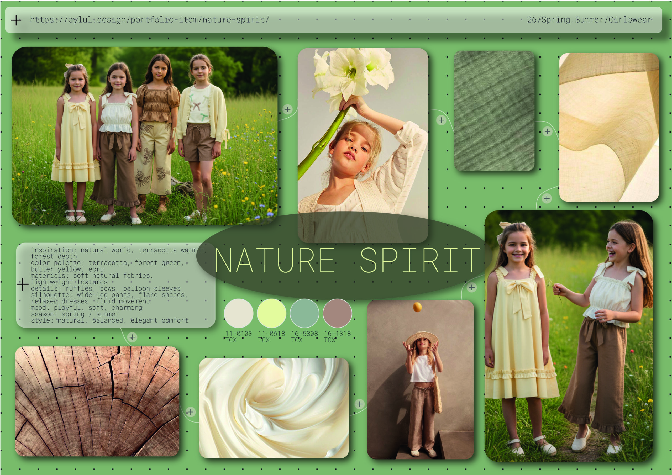 This collection was born from the quiet beauty of the natural world. Inspired by the warmth of terracotta and the depth of forest green, I softened the palette with gentle touches of butter yellow and lifted it with light shades of ecru.