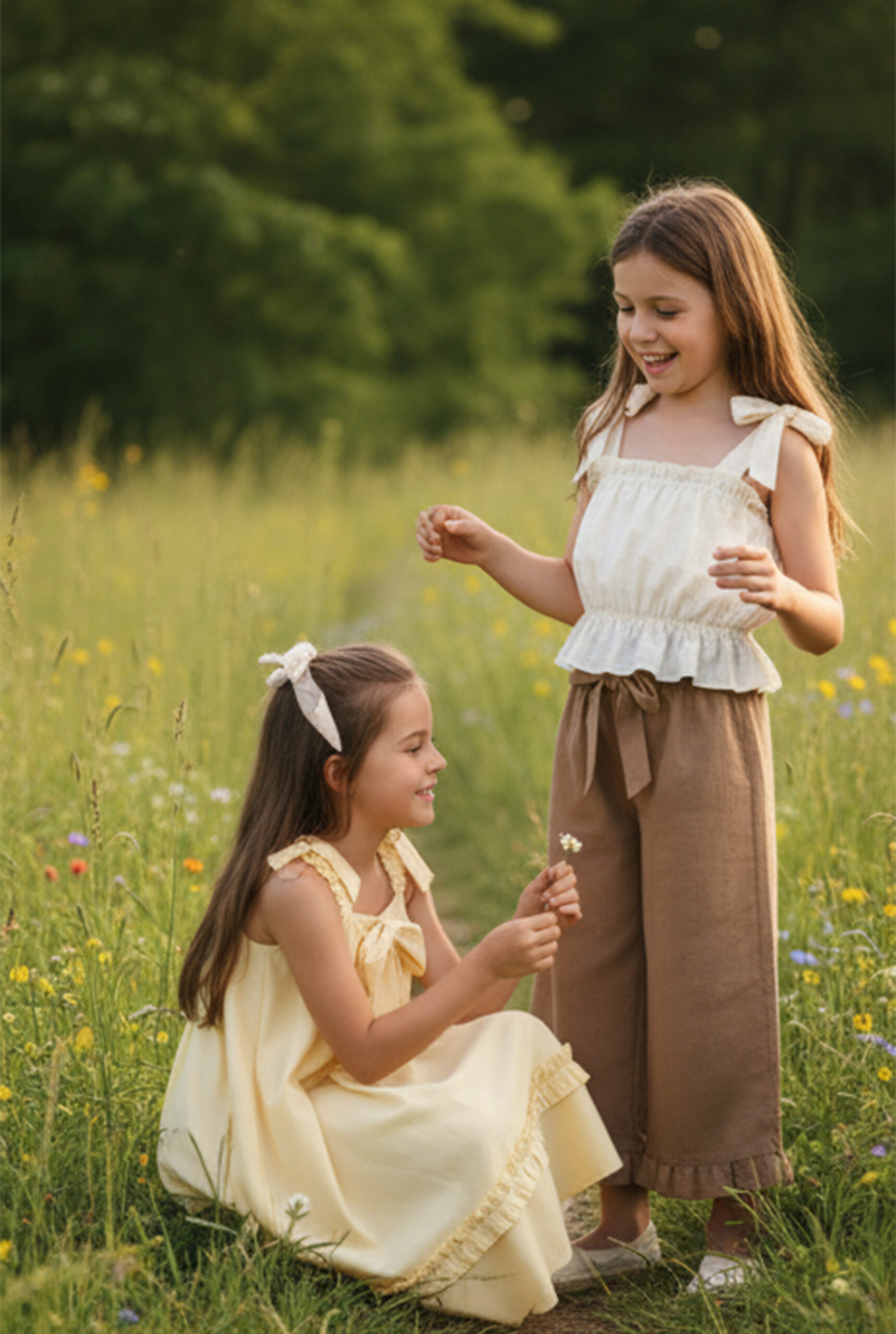 Every piece carries a sense of playfulness and charm, enriched with details like ruffles, bows, and balloon sleeves timeless elements in girlswear. The silhouettes move with ease, from wide-leg and flare pants to relaxed dresses, designed to give freedom while keeping a graceful look.